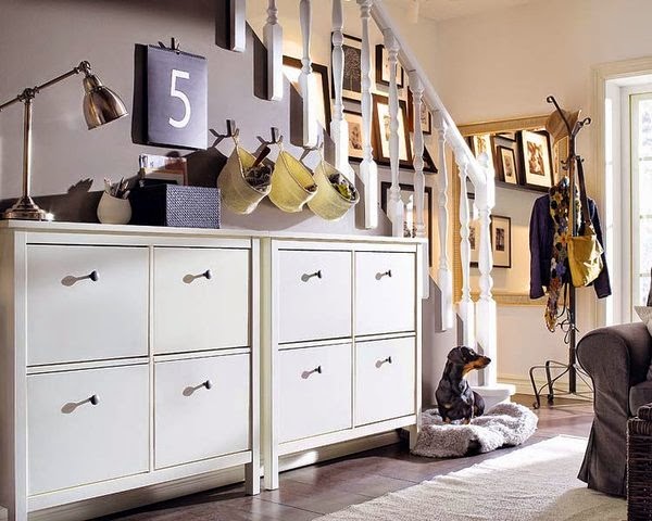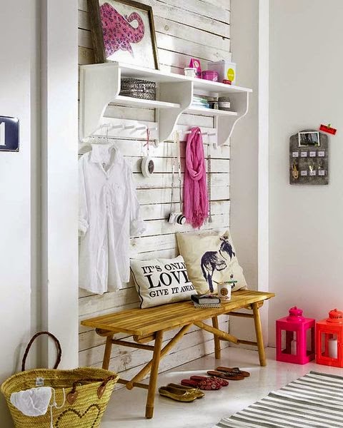 Una idea que me encanta y que no ocupará más que un cuadro para poder escribir notas rápidas. Le dará un toque diferente. Y el llavero que puedes colocar en un cesto sobre la consola, o colgadas en un elemento dedicado a ello.