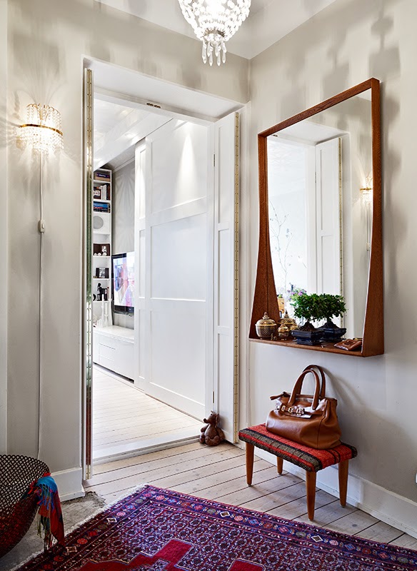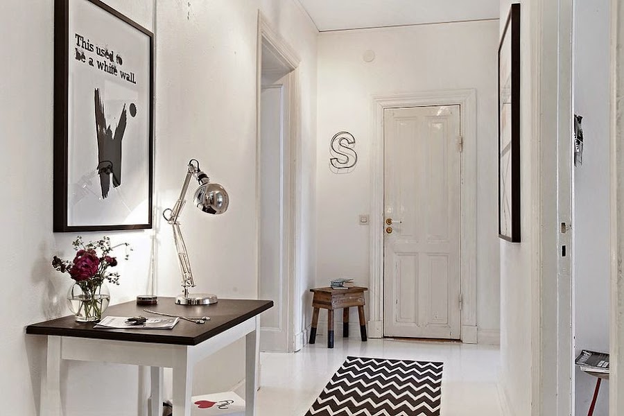 Una lámpara de sobremesa que no ocupe mucho espacio será perfecta para proporcionar la calidez adicional necesaria.También iría bien una lámpara de pie o incluso una instalada a la pared. ¿Y qué hacer cuando se dispone de poco espacio? Un truco consiste en desviar la atención hacia un punto lejano para que el recibidor parezca más amplio jugando con la luz y los elementos.