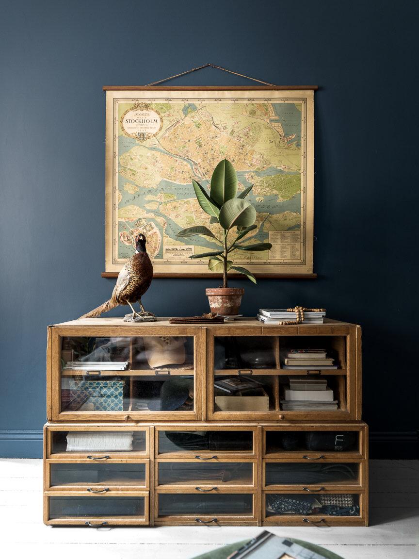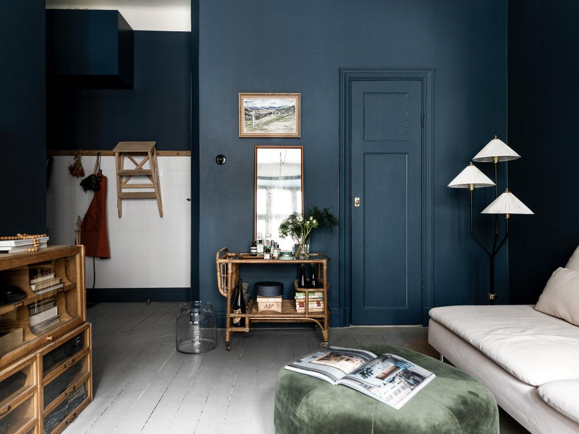 Lo que en algunos interiores podría suponer un problema, en este caso, el color oscuro de los paramentos, permite el uso de mobiliario y textiles claros para que destaquen y creen un equilibrio de diseño. ¿No os parece un interior perfecto?