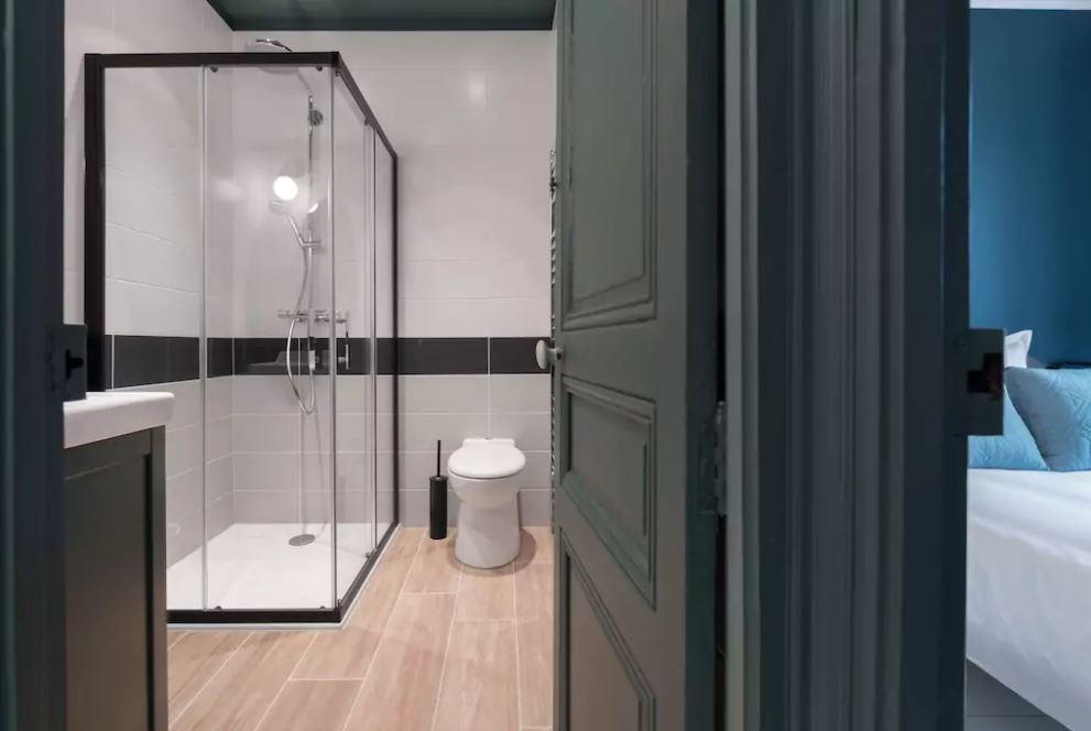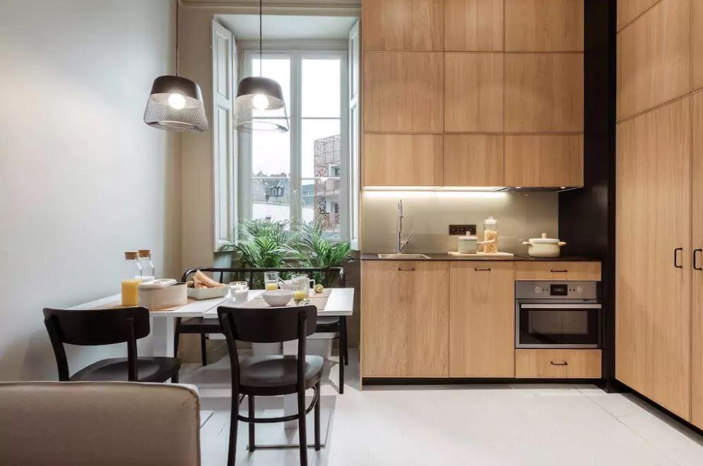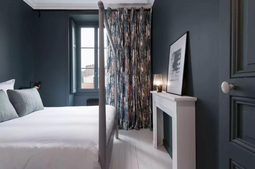 Un mini apartamento en pleno Nantes ( Francia ), en alquiler todo el año como espacio turístico, y de apenas 40 m². Este es un claro ejemplo de que una vivienda en alquiler no tiene por qué ser un espacio frío, de acabados cutres y hecho para cubrir el expediente. Se trata de un espacio pensado al detalle, con calidades adecuadas y asequibles, que en conjunto, crean un ambiente de confort, a modo de hogar, sin dejar de ser una vivienda de paso. Aunque se trata de un interior reducido, cuenta con todo lo necesario para una pareja. Todo el interior se basa en la calidez de los materiales y una paleta de color luminosa y alegre. El juego y contraste de la madera con el blanco, atrae la luz a este apartamento en concepto abierto. Un salón comedor con la mini cocina abierta, que juega con los muebles de almacenamiento, integrándolos en el salón a modo de muebles del mismo. Juega con la altura de techo, que permite ganar metros. La pared de pizarra oscura, enmarca y delimita el área de la tv. Una lámpara vértigo a modo de escultura y aprovechando la altura, remata un espacio donde la tranquilidad y el sosiego reina.