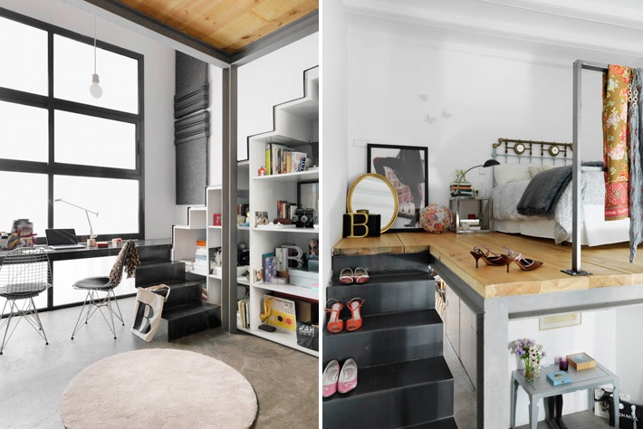 El espacio público de este loft es completamente abierto y se unen las piezas de salón, comedor y cocina, donde el suelo de microcemento y las estructuras metálicas contrastan con el sabor bohemio de las alfombras y pufs lleno de color y estampados étnicos. Frescos y alegres con mucho detalles que muestran un estilo desenfadado y acogedor. Una auténtica vivienda que cuenta con una terraza ajardinada perfecta para disfrutar el verano.