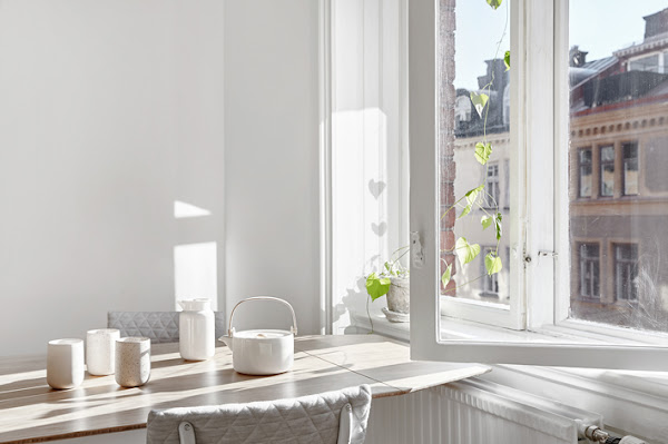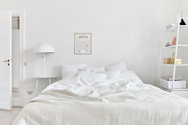 Hoy es viernes y toca post deco en el blog. Lo hacemos con este bonito piso con suelos y paredes en blanco, y algunos toques de color rosa.