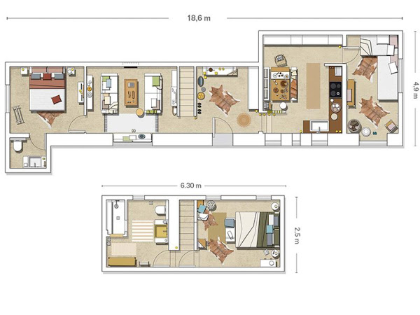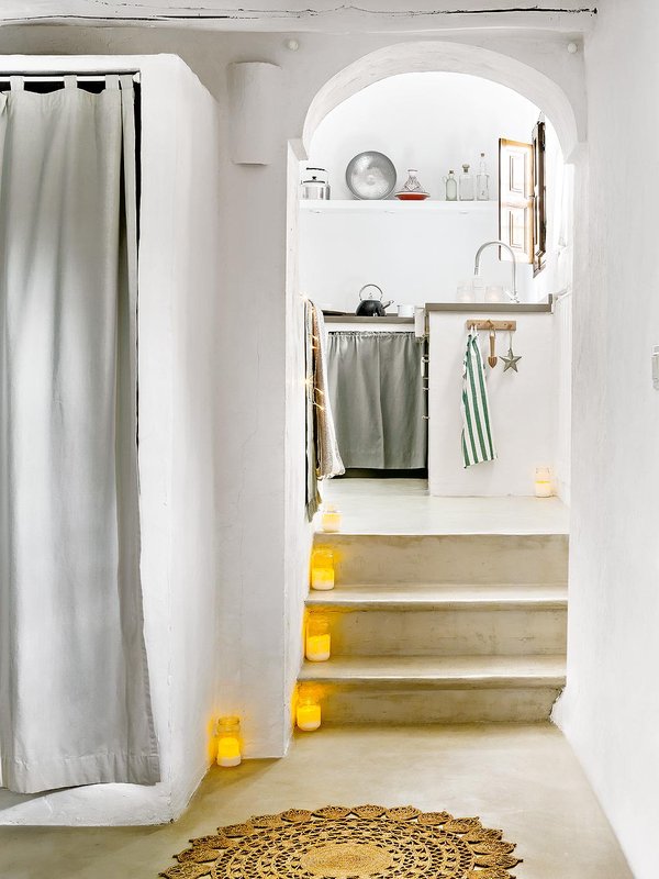 Toda la vivienda me parece ideal pero me encanta la idea de la zona de dormitorio principal a modo de suite en el último piso, con la ducha de obra con los muros encalados, y la zona de mesa comedor en la propia cocina a modo de hogar que nos retrotrae a la casas de hace un siglo en los pueblos. ¿Pasamos aquí la Navidad?