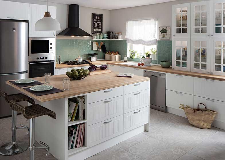 Una opción en tendencia es darle a la isla su propio protagonismo como pieza independiente ya que tiene su diseño, forma y acabados diferentes al resto de mobiliario de la cocina. En estos casos, opciones hay muchísimas, pero siempre hay que mirar que se vea un conjunto armonizado tomando como foco el estilo del espacio, los colores, los materiales, etc. En definitiva, las islas de cocina pueden tener apariencia de mueble robusto, de ciertas dimensiones y fijo, ya que además puede precisar de ciertas instalaciones de agua, gas o electricidad, con lo cual, no se puede mover. Pero no es imprescindible, también puede optarse por islas más ligeras, con un mueble de diseño abierto ¡incluso móviles!. ¿Te apuntas a abrir tu cocina al salón?