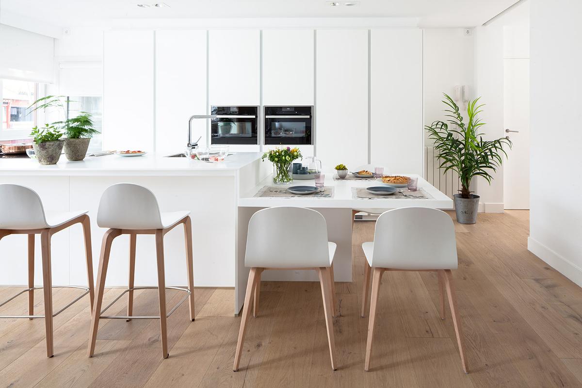 Disponer de una isla nos permite cocinar de cara a los comensales, una manera perfecta de compartir y fomentar el diálogo. Los tres elementos que debería aglutinar este módulo son la placa de cocción, un punto de agua y un plano de trabajo despejado para la preparación de alimentos. Pero una isla puede contar también solo con almacenamiento y barra de apoyo para comer a diario, es una de mis soluciones preferidas. Debemos evitar colocar la zona de cocinado en los laterales de la misma, para evitar los ‘largos paseos’ de una esquina a otra, algo poco práctico. Siempre hay que apostar por una isla que se adapte fácilmente al espacio del que dispongamos.