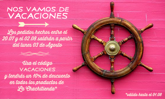 Los pedidos hechos en La Chachitienda entre el lunes 20 de julio y el 2 de agosto, saldrán a partir del lunes 3 de agosto. Eso sí, aquí tienes un regalito para que la espera se te haga un poco más corta ;D