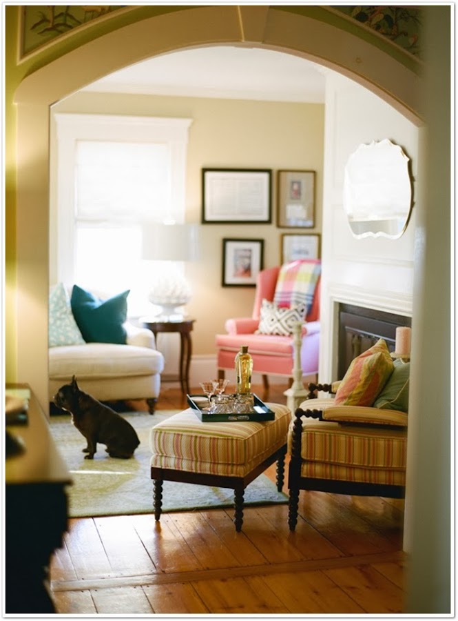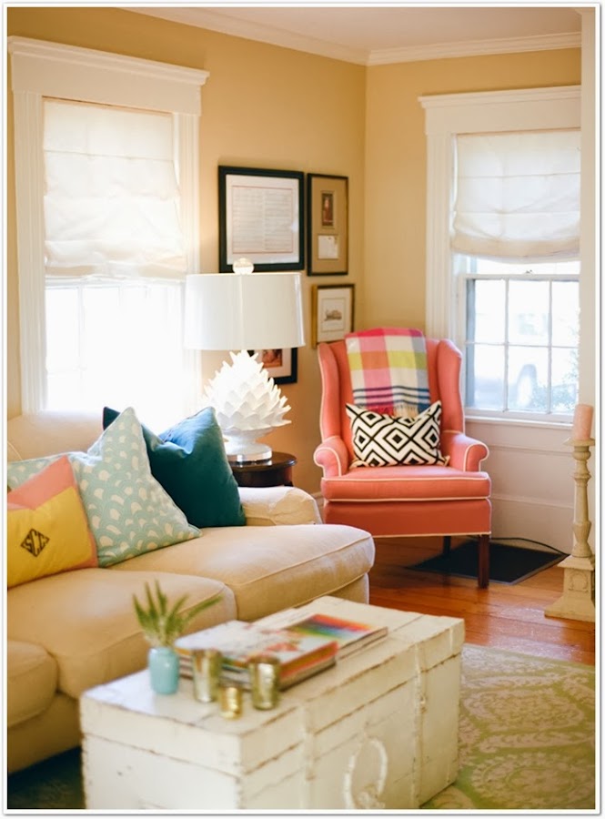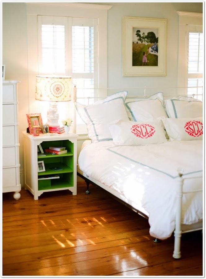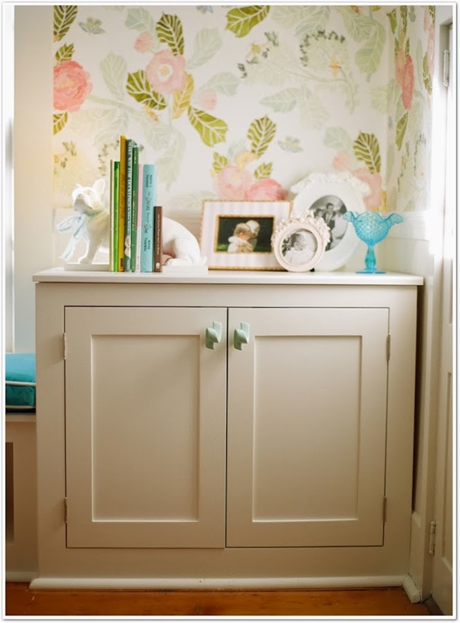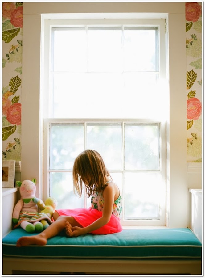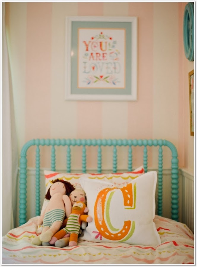 Si hace unos días os mostraba una preciosa web repleta de objetos para decorar la habitación de los más pequeños, hoy vengo con una habitación para peques de las más bonitas que he visto hace tiempo. Un dormitorio compartido por dos gemelas, las hijas de Sarah Crawford, autora del blog Valentine. El dormitorio ha sido decorado con un gusto exquisito, como podéis ver en tonos rosas y turquesas. Adoro las camitas de hierro, y me muero por ese papel de flores.....El suelo de madera de tablones anchos, la zona de la pared de pizarra, el banco bajo la ventana,......nada se ha dejado al azar. Y lo mejor, es que el resto de la casa es igual de especial. El mueble rosa me ha hecho recordar que aún no os he mostrado el que tiene mi hija Paula en su habitación, rosa y pintado por mí. A ver si un día de estos saco unas fotos y os lo enseño........De momento os invito a ver el resto de la casa, una casa que a mi ha llenado de inspiración. ¡Que la disfrutéis!
