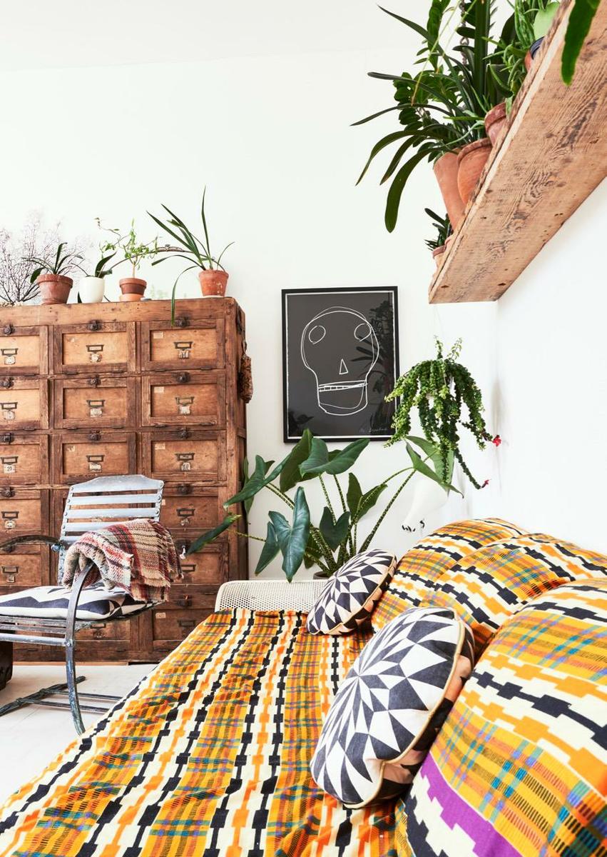 La decoración es una de las protagonistas indiscutibles de esta vivienda que cuenta con muebles vintage, muchas plantas, color vibrante, piezas de arte y artesanía. Una ambientación de espíritu bohemio realizada a base de cazar los tesoros más originales en mercados de pulgas y ventas de garaje.