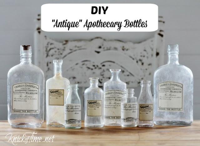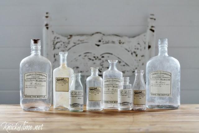Las botellas y frascos antiguos de farmacia son uno de los objetos vintage más buscados en mercadillos y ferias de antigüedades, pero desgraciadamente para much@s los precios suelen estar un poco subiditos de tono. Así que hoy para tod@s l@s que al igual que yo, tenéis un presupuesto más bien tirando a "modesto", vamos a ver como Angie de Knick of Time nos enseña a convertir unas botellas vacías de jarabe, pastillas, frascos de perfume, botellas de alcohol, botellas de refresco, etc.., en perfectas replicas de los frasquitos que habían en tiempos de nuestros abuelos en las boticas.