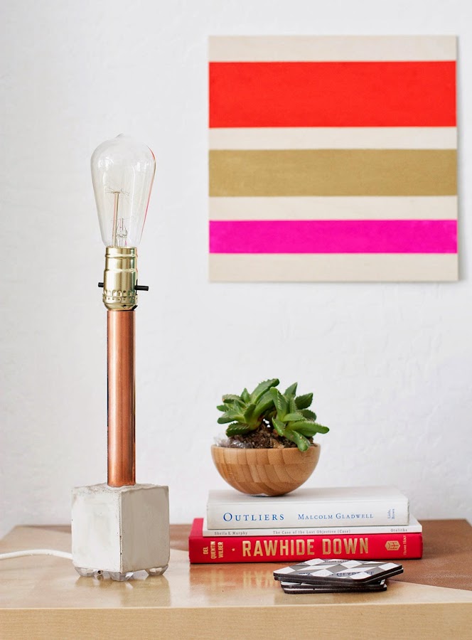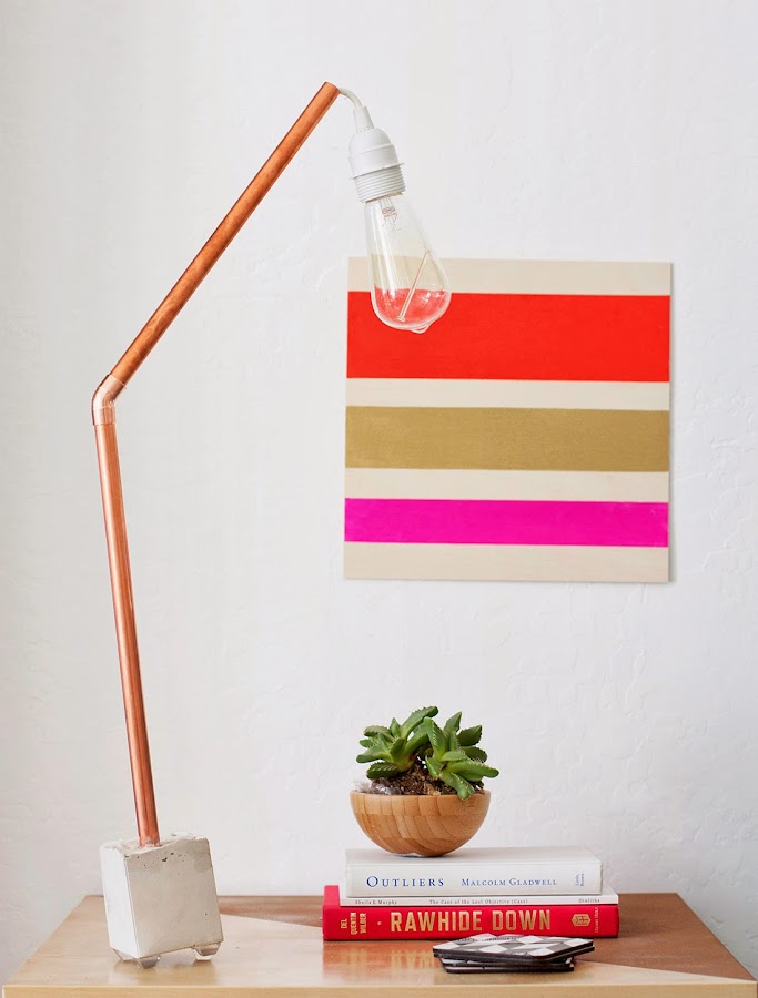 Holaaaaaa chic@s...hoy decimos adiós al Invierno, está tarde entra oficialmente la Primavera, aunque lo cierto es que llevamos varios días con unas temperaturas casi, casi veraniegas. En la entrada que he preparado para hoy vamos a aprender gracias al tutorial de BRIT + CO, como conseguir estas dos lámparas tan originales, a partir de unos trozos de tubería de cobre, un poco de mortero y un mucho de maña...os dejo algunas imágenes del proceso, pero no olvideís consultar el paso a paso, PINCHANDO AQUI.