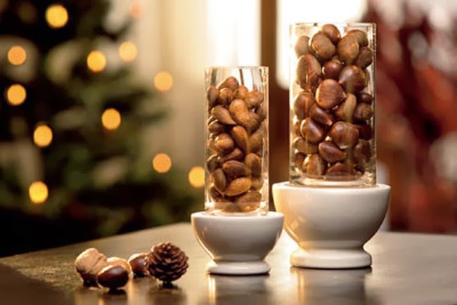 Otro toque puedes darlo al poner la mesa. Bastará con un centro otoñal con castañas, nueces, piñas o cualquier otro fruto de otoño.Qué os parece esta idea?
