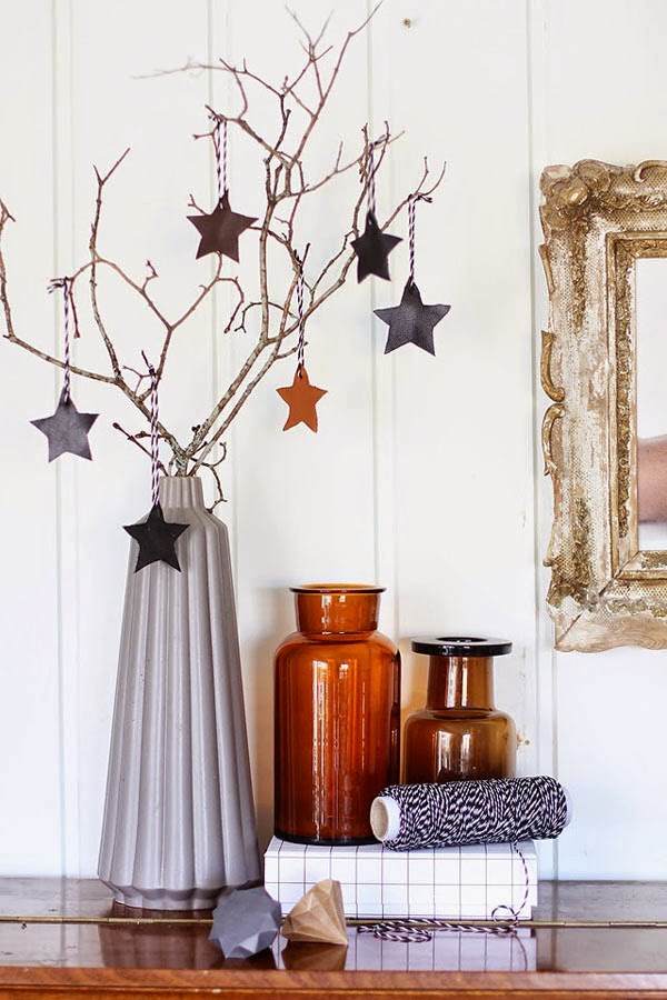 1- Pon ramas en un florero: o en unas damajuanas vintage que tengas, es una manera perfecta de crear un pequeño árbol para ubicar en una consola, mesa auxiliar o de café.