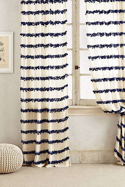 Otra idea que me gusta bastante es la de añadir varias tiras en horizontal a lo largo de la cortina. Tanto si las pones en una parte com por toda la cortina, me parece que es una idea que le puede dar mucha gracia y personalidad al cuarto.