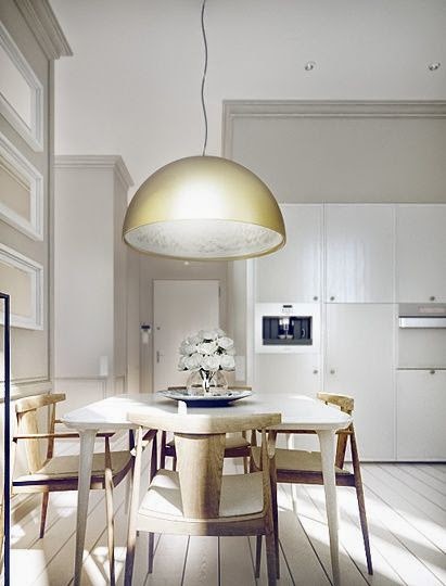 El blanco por definición es la ausencia del color, amado y odia a partes iguales, el blanco impoluto se impone en los últimos años cada vez más en nuestros hogares, pureza,frescura y amplitud son las características de éste color que combinado con otros toques de color , revestimientos, texturas o solo en si mismo son un éxito asegurado, no obstante y a pesar de ser el color de moda son muchos lo detractores, yo personalmente estoy "in love" del blanco aunque siempre se escucha por ahí lo de...es que el blanco es muy sucio..bueno según como se mire, si pones una mano llena de tomate encima de una encimera blanca, aparte de ponerte los pelos tiesos como escarpias, si se ensucia, evidente, peeero no he visto nada más sucio que unos muebles oscuros, y el tan de moda hace unos años wengué, el polvo se ve a millas, ¡¡¡HORROR!!!! también está quién renuncia al blanco porque se nota "la porqueria" así que mejor un color más ·sufrido" oiiiiga!! que significa sufrido? no lo quiero ni pensar!!!XD en comparación con las ventajas creo que sigue ganando el blanco, hoy en día existen tejidos y materiales con los que no nos tenemos que preocupar por la suciedad ni renunciar a una "home" blanquita blanquita y prueba de ello aquí os dejo unas inspiradoras fotos, qué preciosidad! a quién no le puede gustar el blanco??