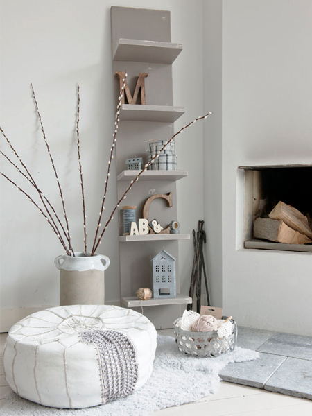 Esta estantería gris al lado de la chimenea me tiene hablando sola. Me encanta el acabado de desgaste que le ha hecho su dueña.