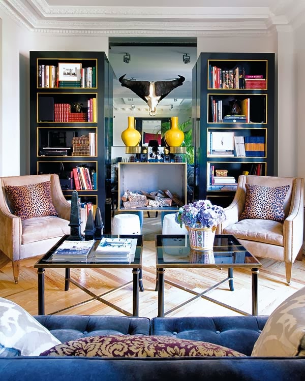 Nuevo EstiloEsta casa es una amor-odio para nosotros. Os la enseñamos porque tiene una chimenea un poco diferente, más moderna, y rodeada de espejo. De la decoración sólo nos quedamos con el maravilloso sofá, las mesitas y las butacas, sacadas de contexto y colocadas de distinta manera. Personalmente huyo de la simetría pero comprendo que hay mucha gente que "la necesita". Este salón es un claro ejemplo de ella.