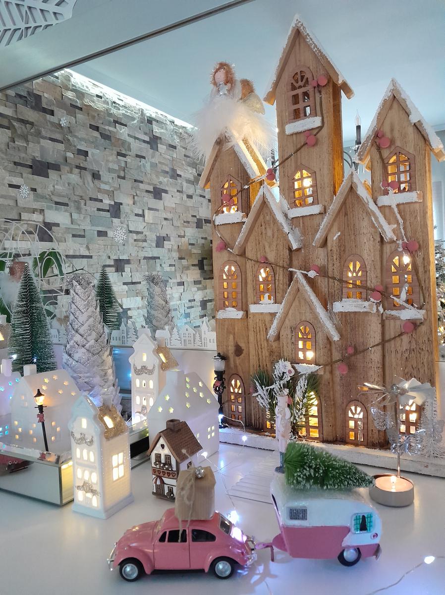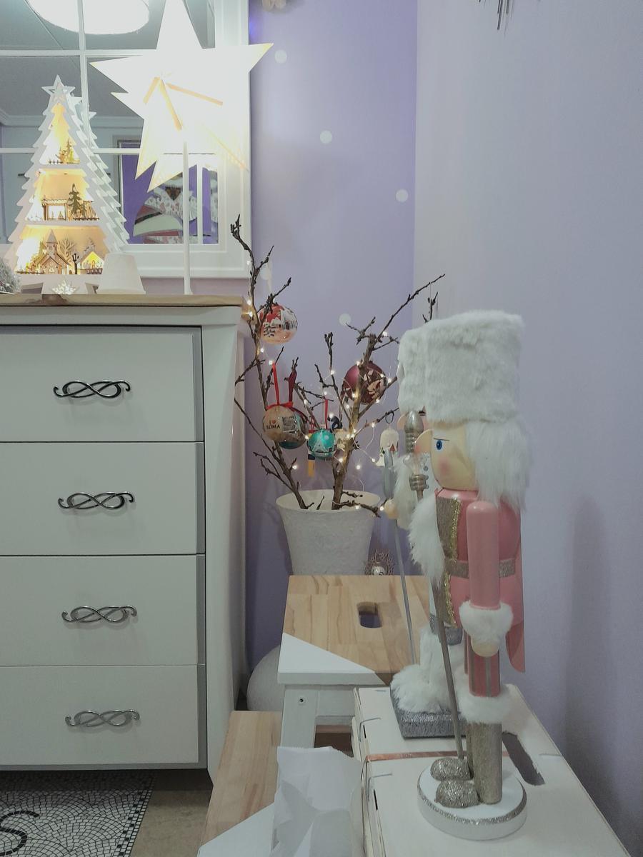 También las casitas de Zara Home que compré en las rebajas de enero, o la bola de nieve de El corte Inglés. Ahh y el soldadito rosa que compré el otro día en Atelier Home y que vigila la puerta de la
