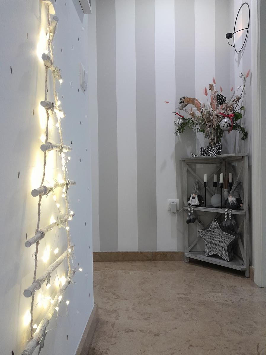 También tengo un arbolito de ramas y una guirnalda en la entrada al salón
