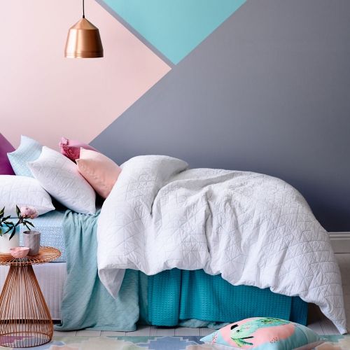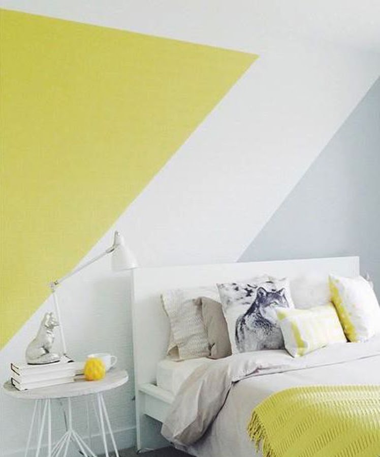 Una de las opciones más recurrentes es poner este tipo de paredes en las habitaciones. Tanto para una pared de cabecera como para una lateral, la combinación de triángulos de colores, tamaños y formas diferentes siempre es una buena apuesta.