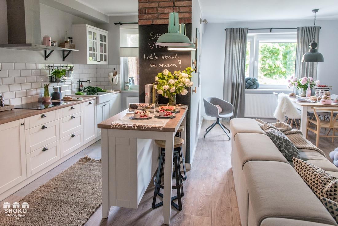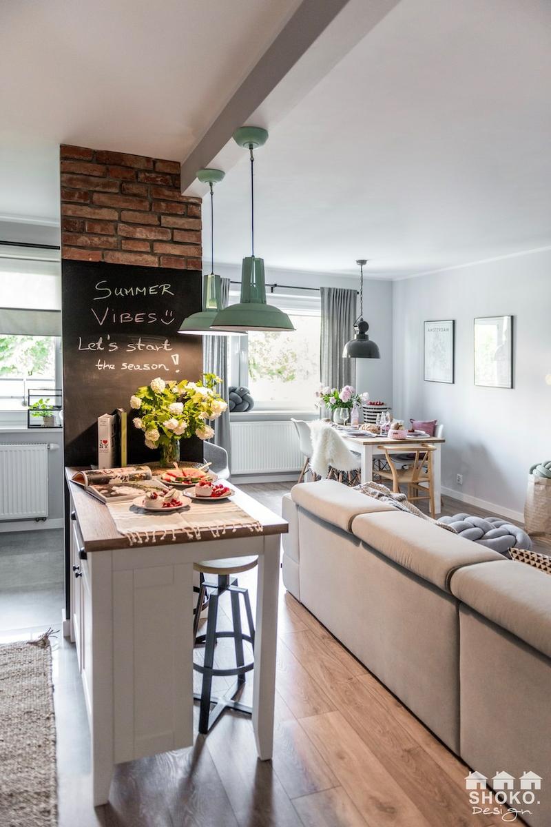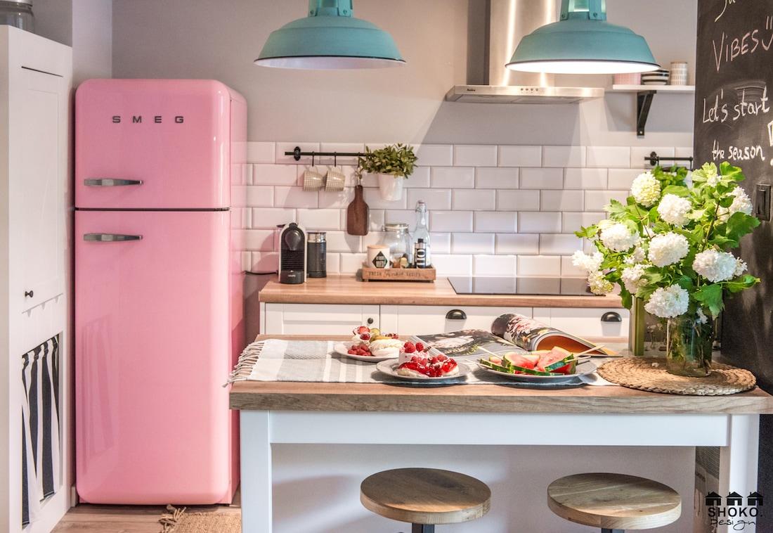 Un maravilloso estilo escandinavo marcado por la utilización de elementos muy naturales y acentos de color pastel, muy suave que aportan una gran dosis de calidez y confort. Para romper un poco el estilo demasiado romántico, los colores pastel se usan en pequeñas dosis y detalles como complementos. A ello se suman colores de la paleta neutra y piezas de diseño de líneas rectas donde se intercala el uso de madera natural y textiles y fibras naturales. La pared de ladrillo visto, muebles de estilo industrial y el frente de azulejos tipo metro, contrastan y crean el estilismo ideal de un espacio lleno de sensaciones de verano.