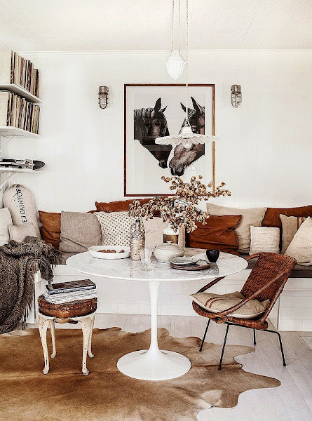 Me encanta la personalidad y el sabor rústico que aporta el cuero, los tonos, el mimbre… en contraste con las piezas más modernas como el mármol… Todo un despligue de personalidad y buen gusto. ¿Qué os parece?