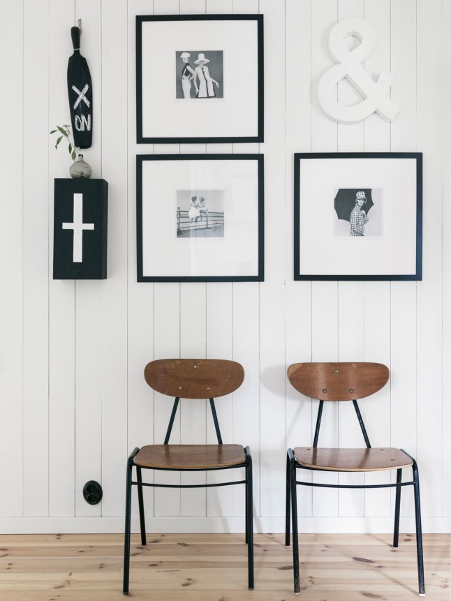 En este caso los pequeños espejos quedan perfectos con algunos marcos nuevos y otros antiguos. Además, las pequeñas piezas en negro y dorado destacan sobre el blanco y la madera, y le aportan calidez a la casa.