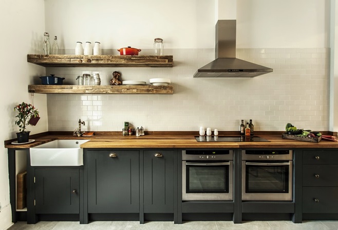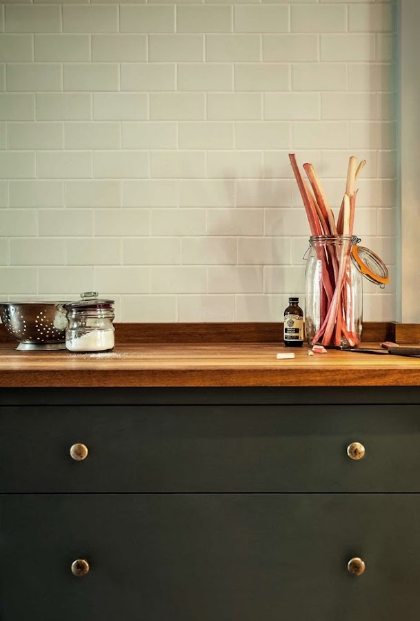 La cocina que hoy os muestro proviene de una firma que se dedica a la fabricación de muebles, almacenaje y elementos contenedores para esta estancia, hechos a mano en un taller de Suffolk, caracterizado por el uso de elementos tradicionales como el bronce y encimeras claramente naturales: British Standard by Plain English. Con un estilo sencillo se recrea una cocina rústica con muebles de madera pintados ¡En negro! y cierto aire "british", elegancia sutil tanto en los colores y materiales. Los detalles como tiradores, grifería y fregadero en porcelana blanca, nos transportan a las antiguas casas de campo de los pueblos. Los armario pintados, además, permiten actualizar la cocina cada pocos años. Las superficies desgastadas por el paso del tiempo y el uso y roce, pueden ser repintadas en un color diferente, y la estancia tendrá un estilo diferente. En este modelo que me ha encantado el contrachapado es de abedul. La elegancia y la simplicidad se combinan en esta cocina con toques industriales.