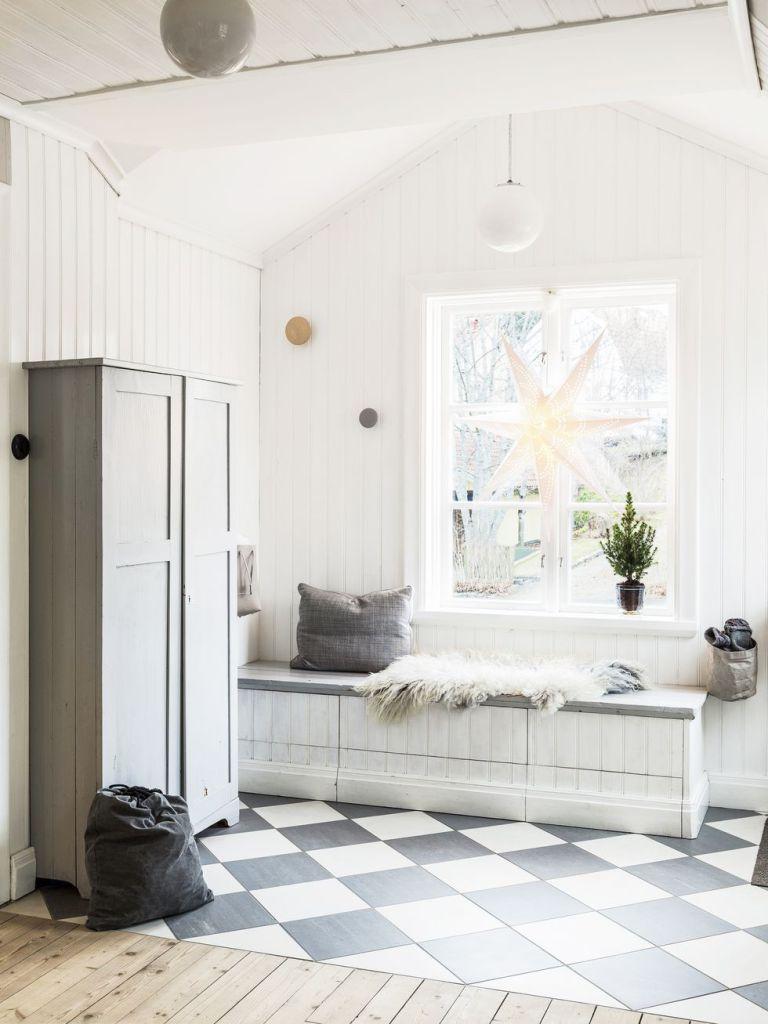 Cuando se erigió el porche acristalado, la sala también se levantó, y la familia consiguió mucho más espacio para almacenamiento de cosas. Un solado a cuadros en blanco y negro o las cestas de rafia, el solado de madera en el resto de la vivienda, hacen de este interior un hogar confortable y lleno de ideas inspiradoras.