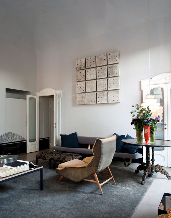 Cuadros pintados en la misma sintonia de colores.Una versión low cost puede ser mediante cartulinas de color en tonos similares y colocados al azar (en nuestro piso de estudiantes tuvimos algo asi y quedaba muy resultón...)