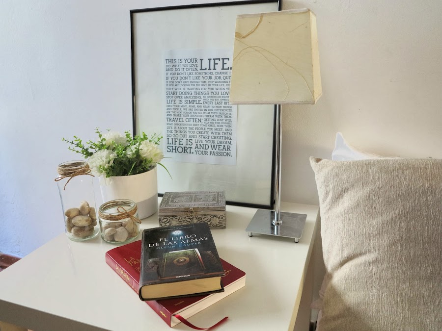 Me encanta como queda en la terracita, que es mi próximo proyecto, ya que dentro de nada viene le calorcito y tenemos que aprovecharla, seguramente este sea su sitio, pero de momento es el protagonista de mi rinconcito de lectura, con un aspecto romántico.