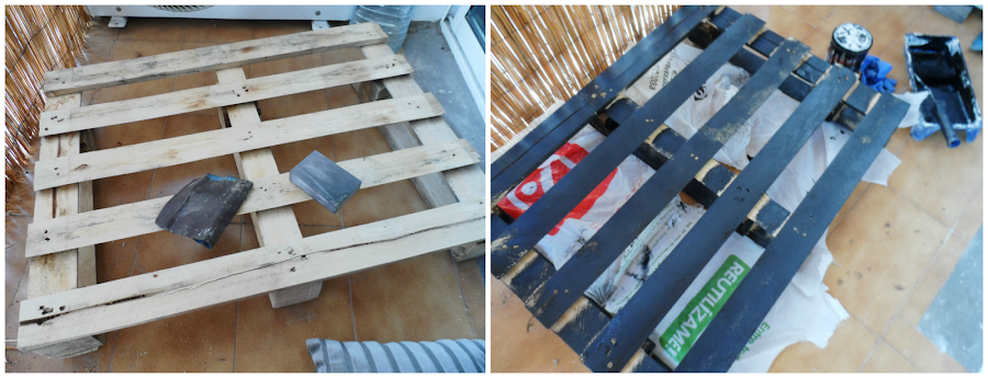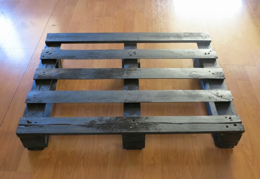 1. Quitaremos las partes del palet que no queramos, yo no quite ninguna porque quería esa forma, ya que el palet lo quiero fijo para el suelo, sin ruedas o patas, pero vosotras el modo que mas os guste.