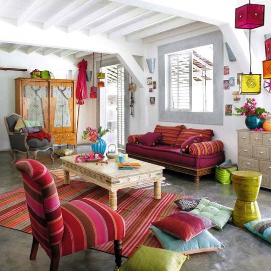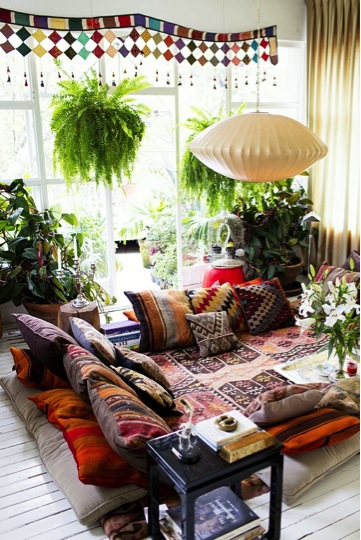 El ambiente Bohemio debe estar a medio camino entre la decoración de interior y la de exterior, lo máximo posible.