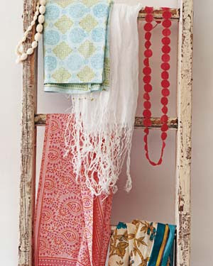 Pon en un rincón una mesa, una estantería o una escalera de madera decapada o que esté lijada pero sin pintar.