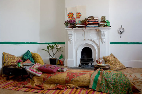 Pon en el suelo una docena de cojines de rayas y tendrás de inmediato un ambiente Boho.