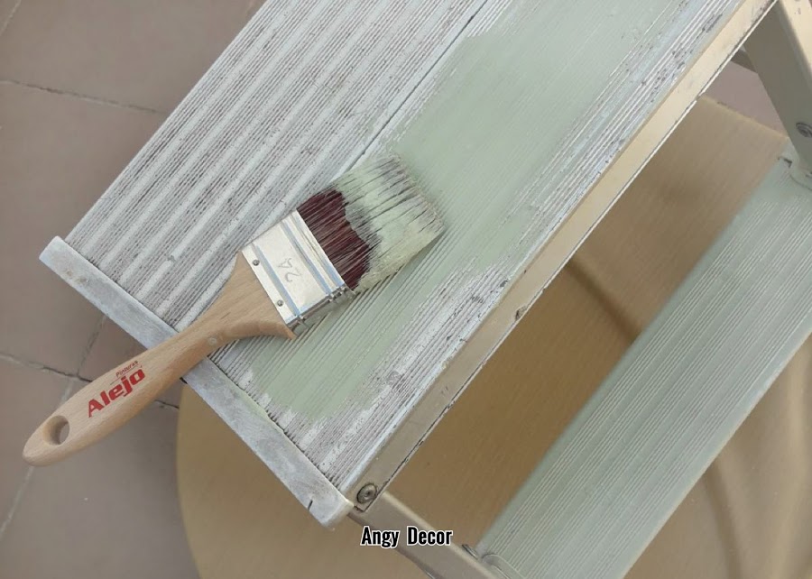 He utilizado pintura a la tiza verde antiguo y una brocha mediana plana. Antes de proceder a pintarla la he limpiado con alcohol y he lijado algunas marcas de pintura que tenia para que no se notasen relieves