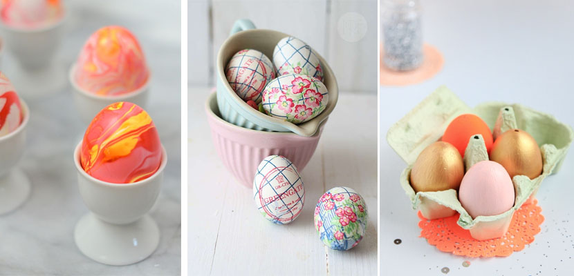 Pascua es síntoma de que el buen tiempo ya está casi entre nosotros y de que las flores vuelven a resurgir dando un estupendo color al paisaje que nos rodea, donde la luz, frescura y alegría vuelven apoderarse de todo. Crear una decoración de esta época es, además, sencilla y económica, pues para ello sólo necesitas algunos huevos cocidos, tintes de colores, pinturas o purpurina para darles color y algunas flores de temporada, cintas, papel... para componer centros como los que veis en las fotos y en los que podéis inspiraros.