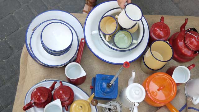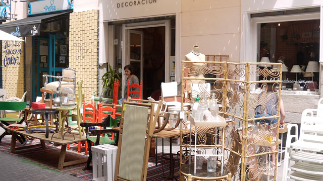Los anticuarios y tiendas de mobiliario salen a la calle en formato mercadillo; mercadillo glamuroso, eso sí, con las cubiertas de tela de sus puestos y sus lamparas Leran de Ikea.
