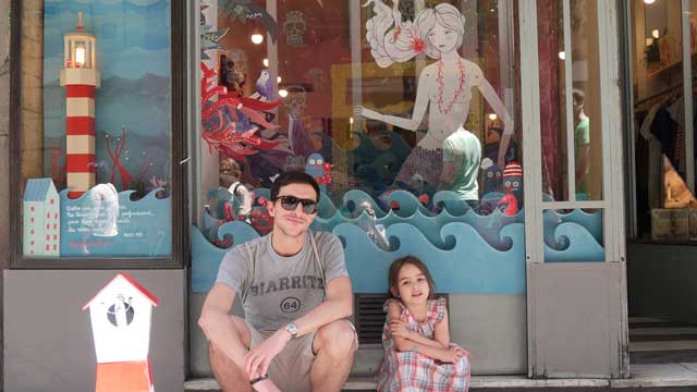 En la Parrilla optamos por reproducir un plano de metro con churros de piscina simulando la mítica entrada del metro Sol (dandole una versión diferente del tema Sol) y, para el Barril añadimos motivos marineros incorporando banderas náuticas y forrando la parte inferior de la fachada con tiras de bayetas.