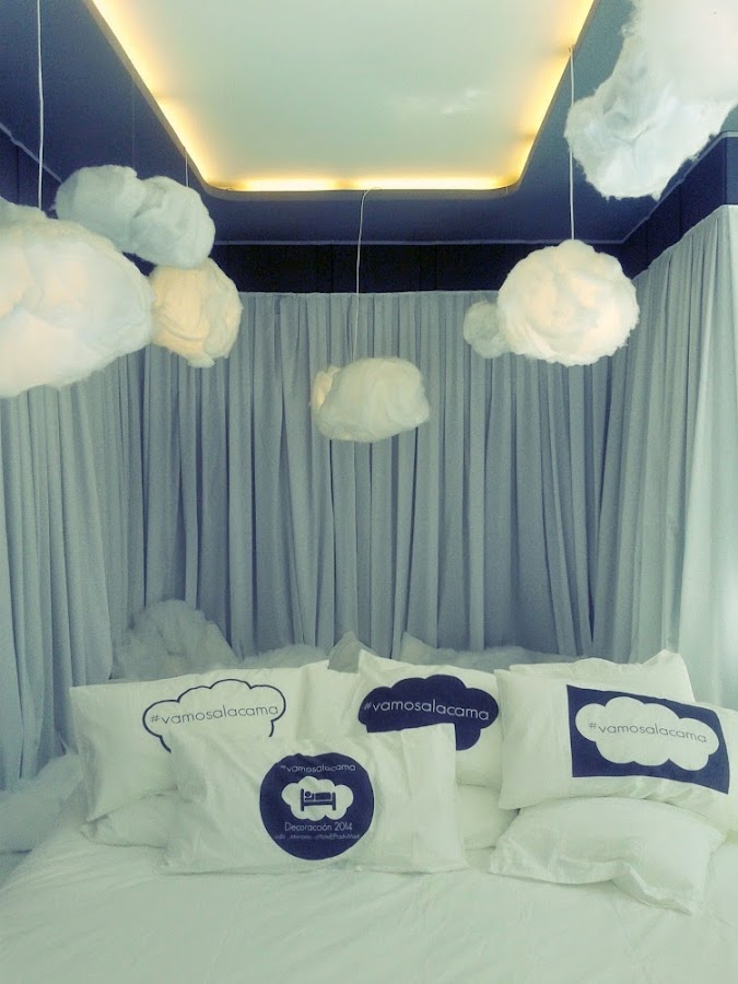 Fuero unos días de locura, de compaginar el trabajo del día a día con todo ésto, producción de nubes, montaje, cuidar de la cama, hacer fotos a todo el mundo, locuras de móvil, whatsapp a raudales, líos de cuentas de twitter, y pedir que la gente se quitase los zapatos cual madre!! Pero sin duda ha sido una experiencia estupenda y un buen inicio en este mundo maravilloso de la decoración, no creéis?