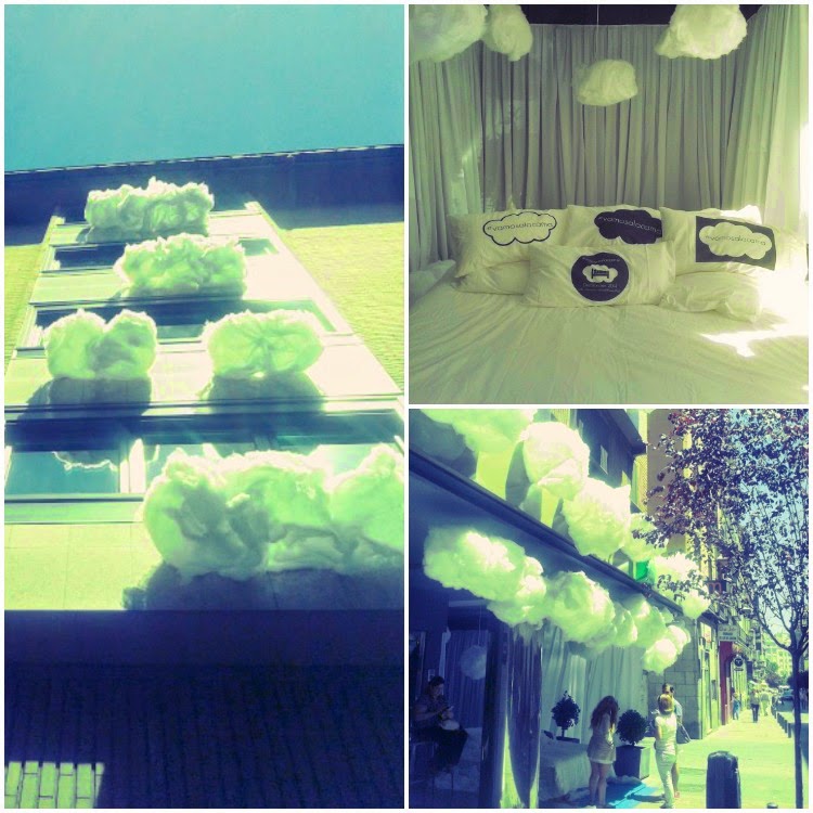 Como veréis, el concepto es muy sencillo, algo naif y muy apetecible...sacar una cama a la calle ya os digo que llama mucho, y si es rodeada de nubes ni os cuento!!