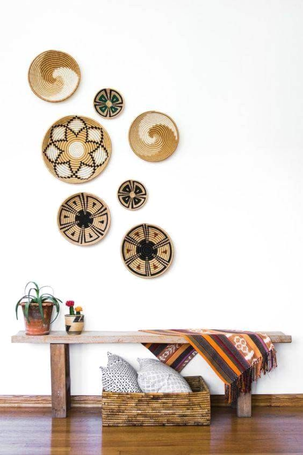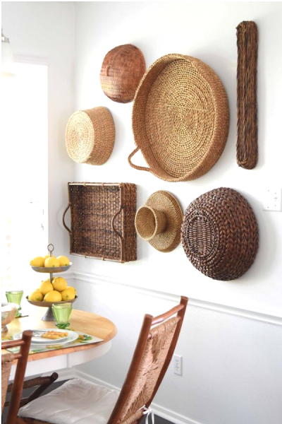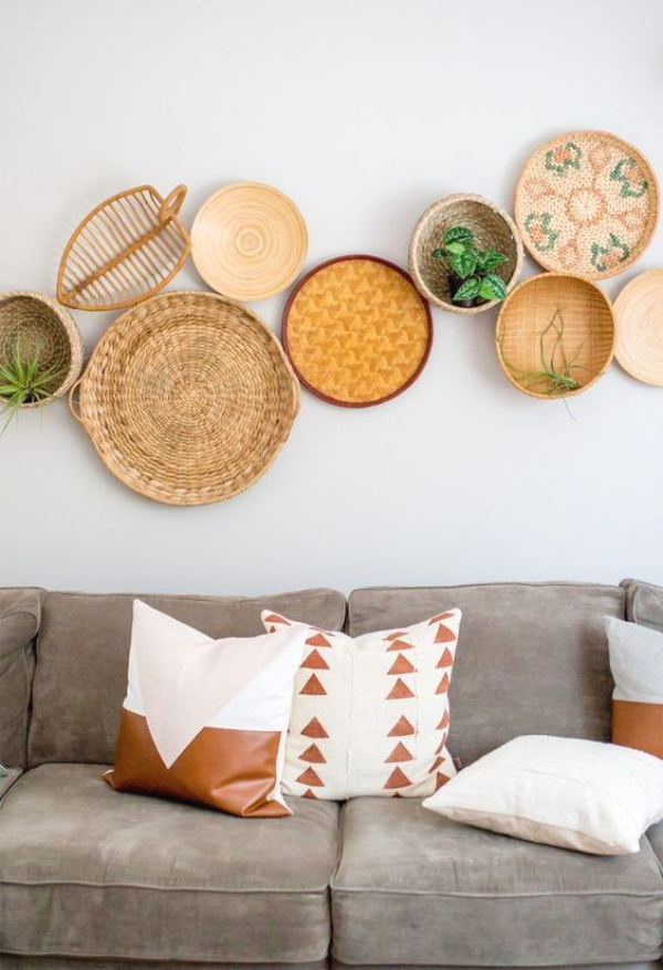 Últimamente se lleva mucho decorar las paredes con moduras, tapices, papeles pintados y diferentes elementos que le den protagonismo y personalidad a la estancia. Una de las ideas que más nos gustan para darle vida a nuestras paredes son las cestas artesanales, creando conjuntos que aportarán a la estancia un toque étnico y original que no pasará desapercibido. La idea es hacer una bonita combinación de cestas, a veces compradas en diferentes viajes, o buscadas de forma minuciosa en pequeños bazares en los que venden artesanía. Crear un conjunto que visualmente nos agrade y dar rienda suelta a nuestra imaginación. ¡Cómo más te guste!