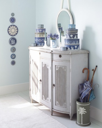 Distintas tonalidades de azul,el beige,el blanco,el verde claro,amarillo.