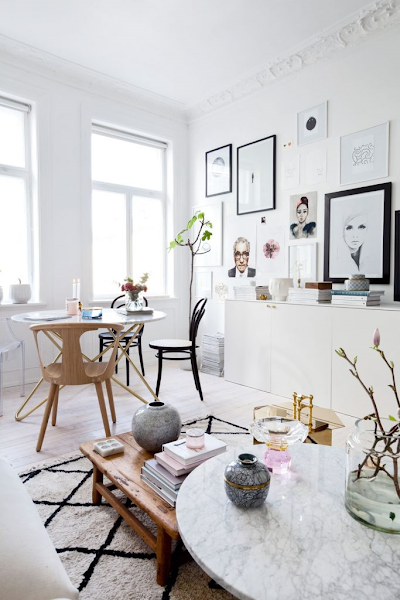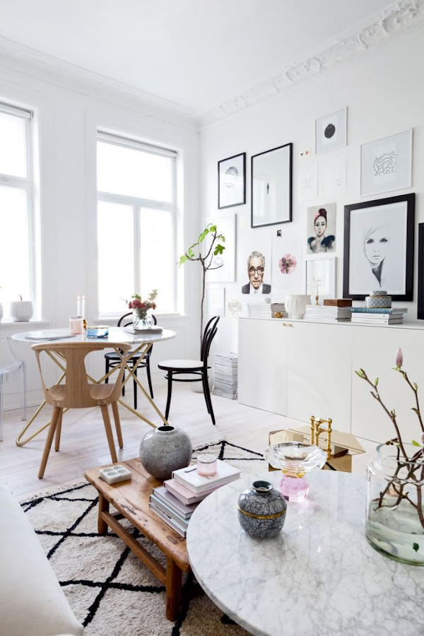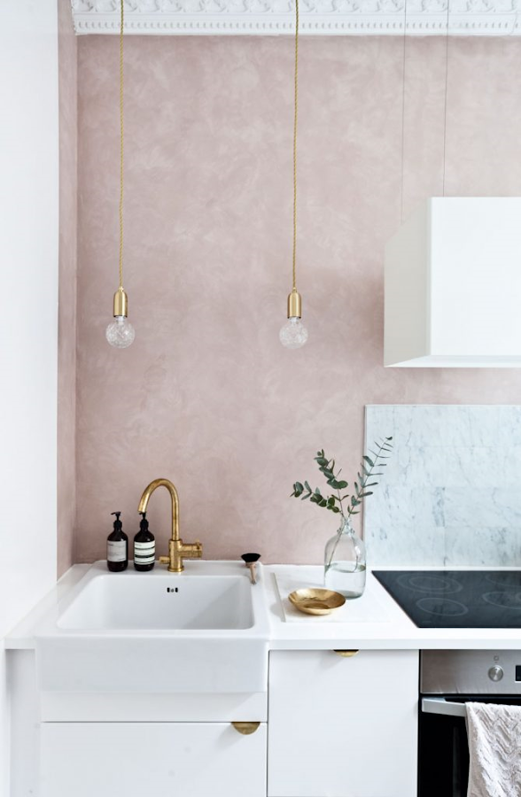 En esta pequeña casa situada en Oslo, el dorado se mezcla y convive con maderas, con metales, con mármoles y cementos....con texturas gruesas.... es un claro ejemplo de cómo no tenerle miedo y comenzar a usarlo tanto en detalles como objetos.