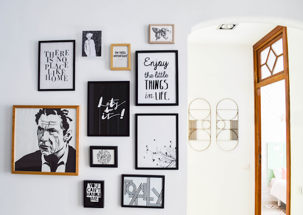 El toque más hogareño teníamos claro como lo queríamos conseguir: una composición de cuadros personalizada con fotos, láminas y recuerdos familiares.