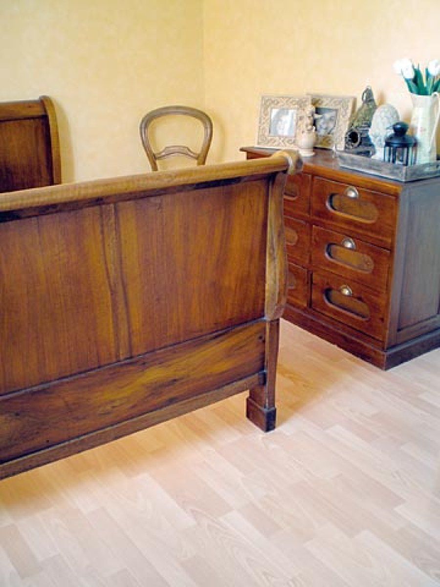 La cama de la habitación de invitados sí que es fruto de un largo peregrinar "cada sábado y domingo, recorriendo las brocantes y ferias de antigüedades de la región". Disfrutar de la amistad de esta habilidosa psicóloga, significa acomodarse en una alcoba donde se experimenta una gran paz.