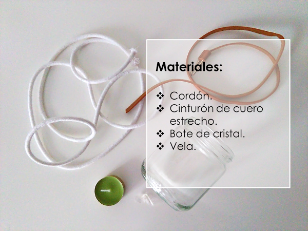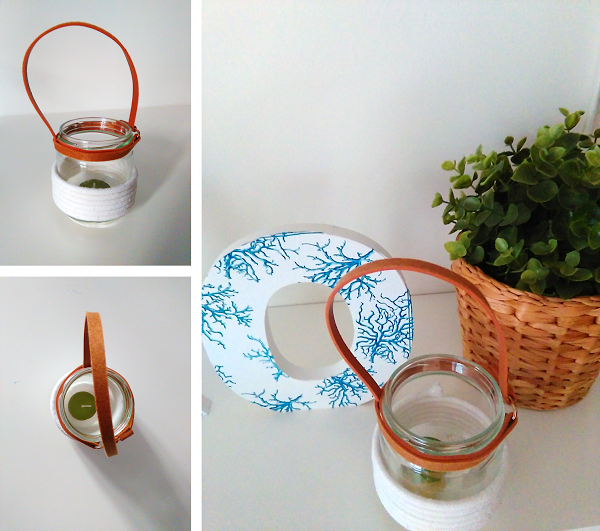 Para este segundo Handmade reutilicé y reciclé objetos que había en mi casa; un bote de cristal de conservas, cordón blanco de algodón que me sobró de los posavasos que os enseñé en este post, y un cinturón estrecho de un vestido de mi hija que le queda pequeño.Y con todos estos elementos creé un farolillo.