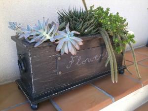 3. Esta es la propuesta que nos hace LAS COSAS DE MAR: MACETERO DE CAJA DE VINO RECICLADA. Ya veis que con un poco de imaginación y mano de obra podemos conseguir piezas únicas. Aquí Mar ha conseguido este macetero con materiales 100% reciclados (caja de vino, argollas de cortina para las asas, pomos de armarios para las patas). Rustico Chic total.