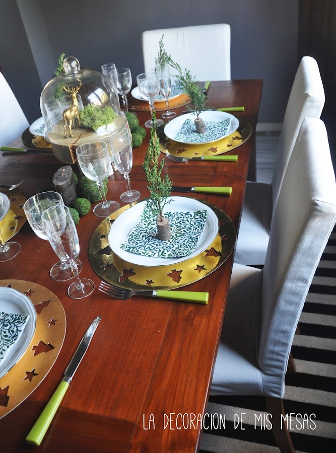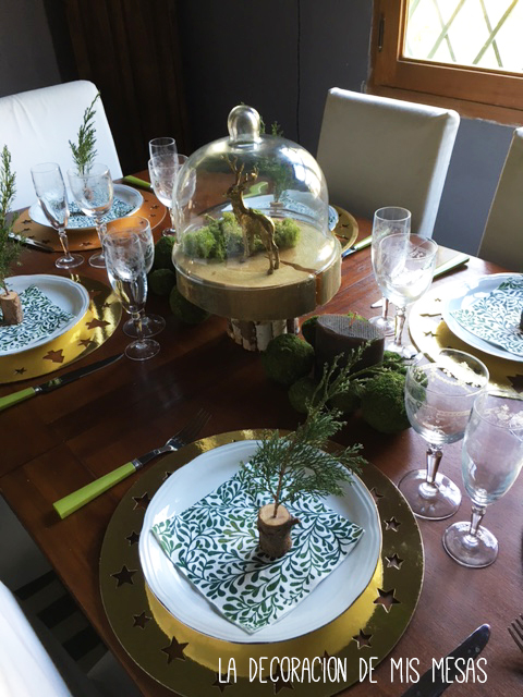 Sin embargo, al ver un ciervo dorado que había comprado en Leroy Merlin para sacar fotos bonitas de las vajillas navideñas de la Shop (que tampoco he hecho por falta de tiempo) se me encendió una pequeña bombilla en mi caótico cerebro que hizo que, en cosa de segundos, vislumbrara cómo quería mi mesa de Navidad con cosas que tenía en casa.