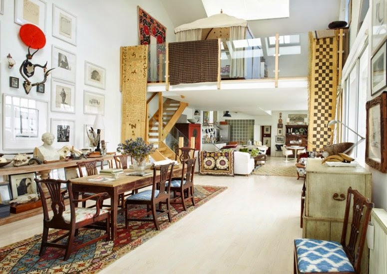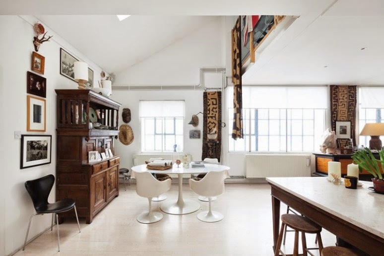 Cuando tu espíritu es bohemio, no se rige por formas preconcebidas, se rodea de lo que le gusta y va a buscar lo que sueña... Así el resultado siempre es una decoración ecléctica, única, libre... Está claro que en esta casa vive uno de esos espíritus inquietos, que se ha traído consigo trocitos de todo el mundo para sentirse como en casa. Arte, cultura, mezcla de lo nuevo y lo viejo, y todo encaja a la perfección, todo fluye envuelto por la luz natural que lo inunda todo... Nos vamos hasta Londres para conocerla al detalle, ¿nos acompañas?