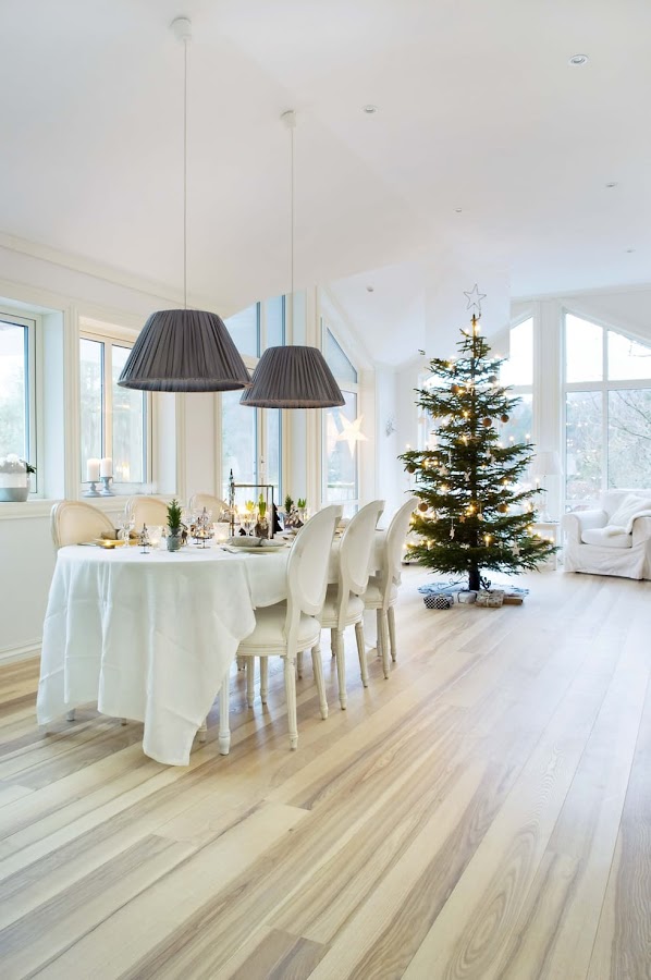 Pero sí en lo que respecta a la decoración... El lunes os enseñamos 10 árboles de navidad originales, y uno de ellos estaba decorado en blanco, un tradicional árbol que nos encanta y que encajaría perfectamente en este home tour que os hemos preparado hoy con el blanco como protagonista: Decoración natural para una Navidad, oh! blanca Navidad.